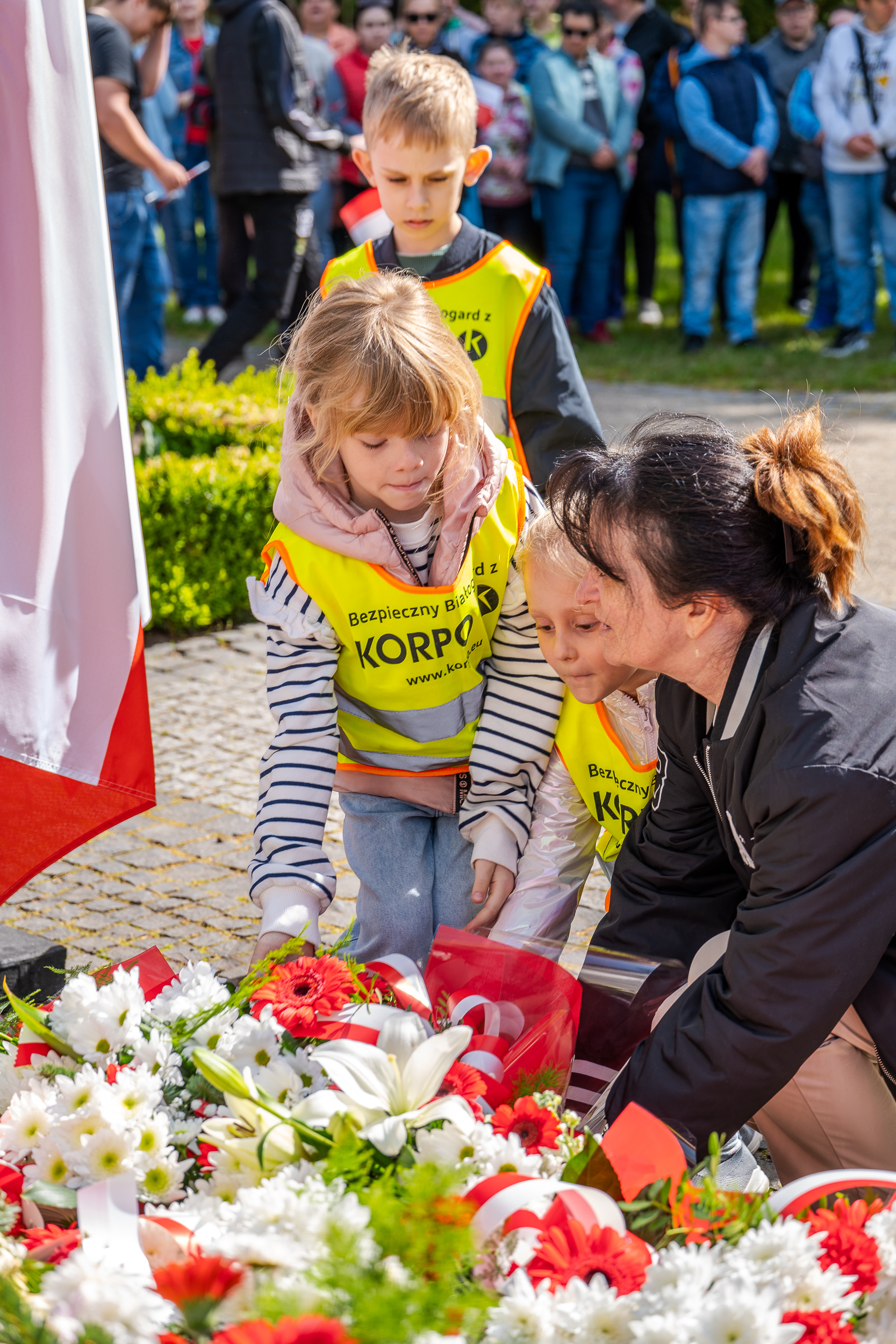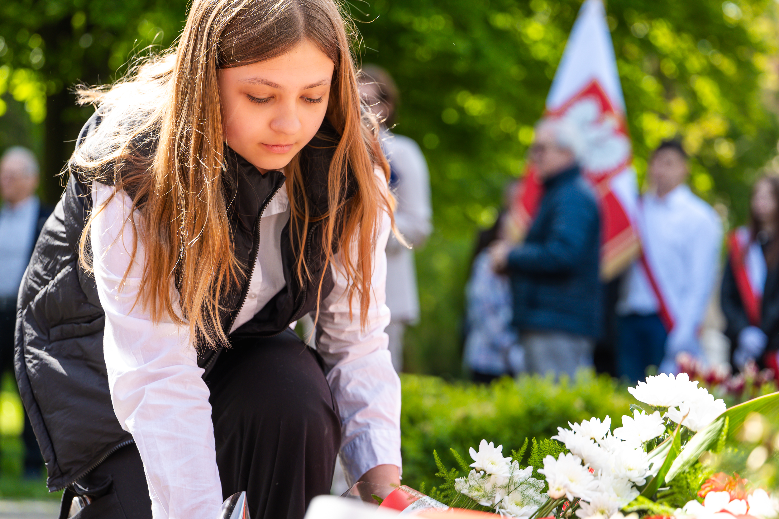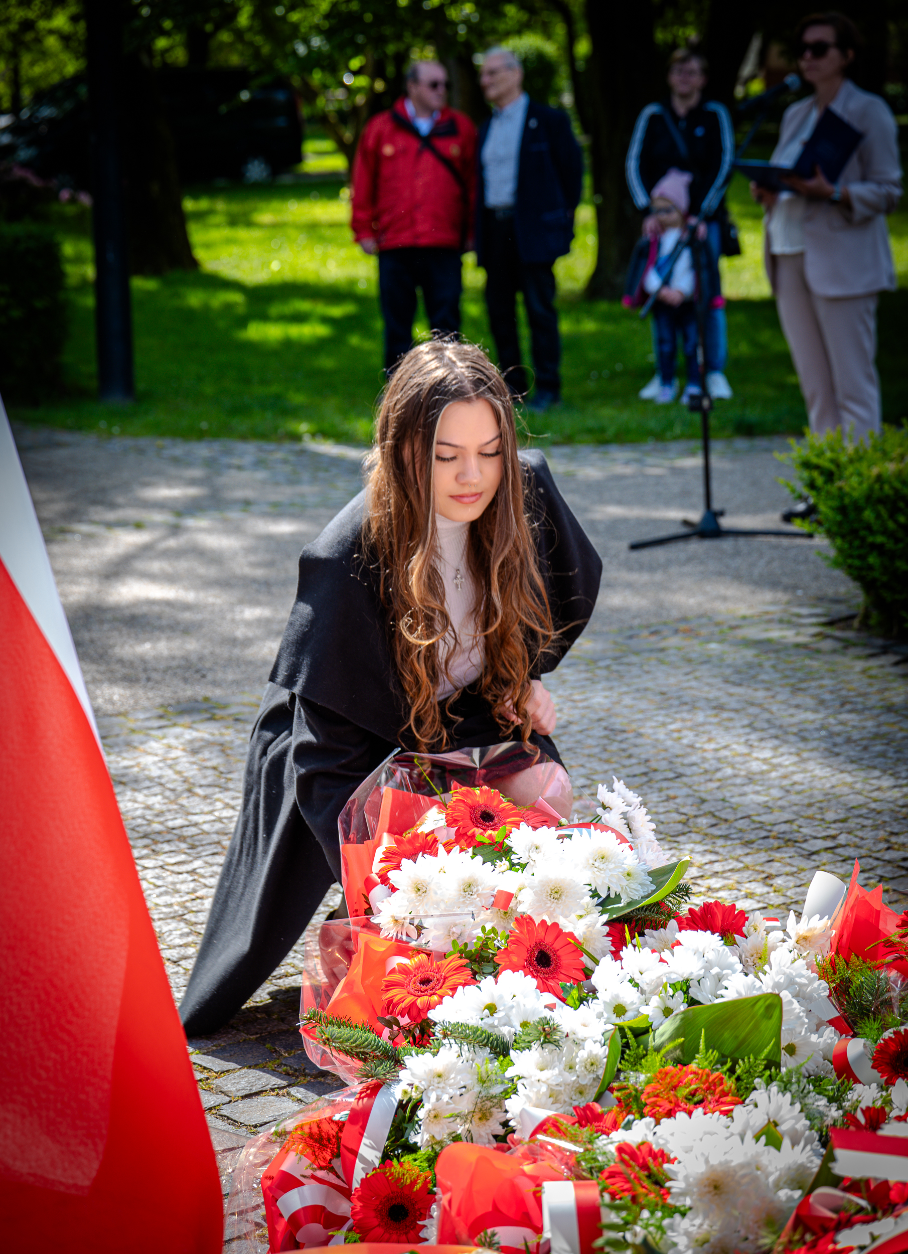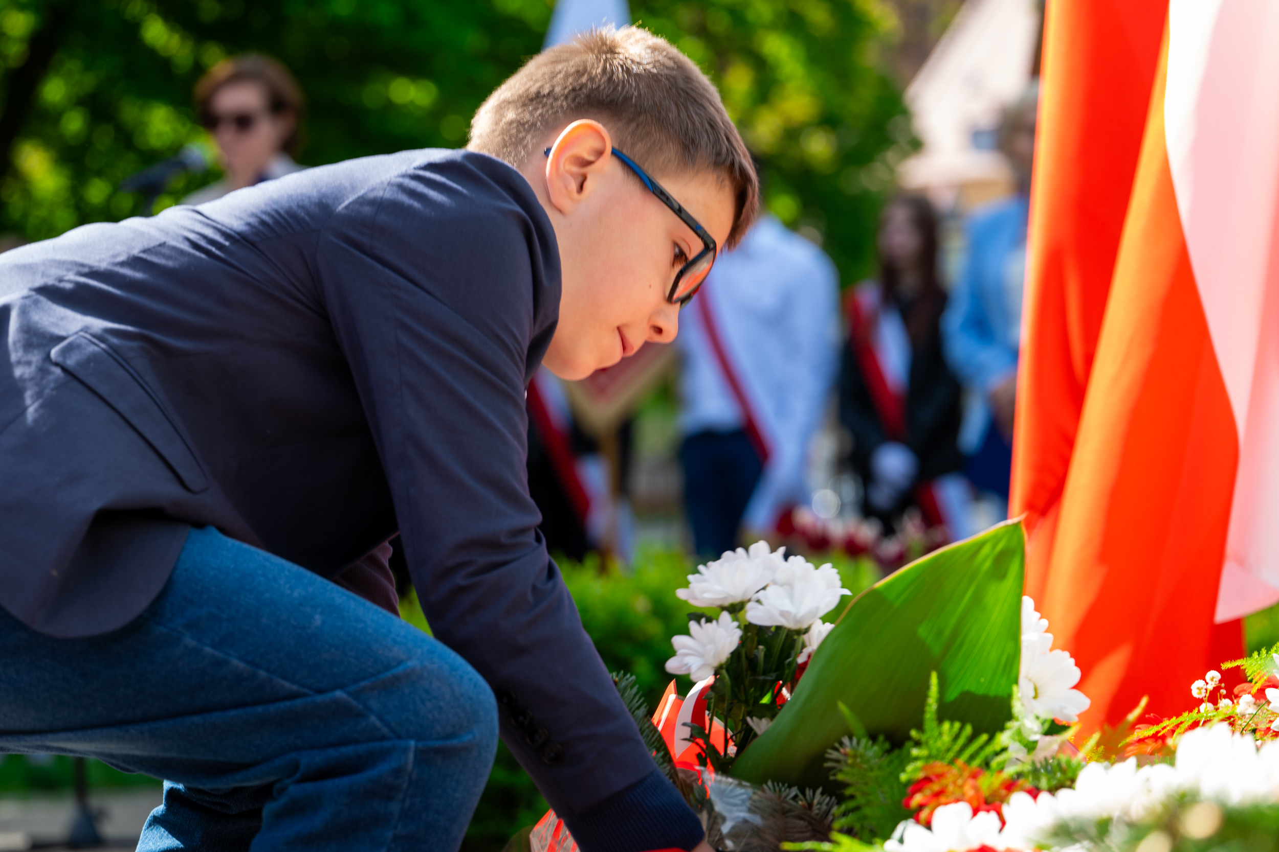 O godz. 10:00 pod pomnikiem Orła Białego wiązanki kwiatów złożyli przedstawiciele lokalnych władz, związków kombatanckich, instytucji, szkół, przedszkoli i stowarzyszeń.
