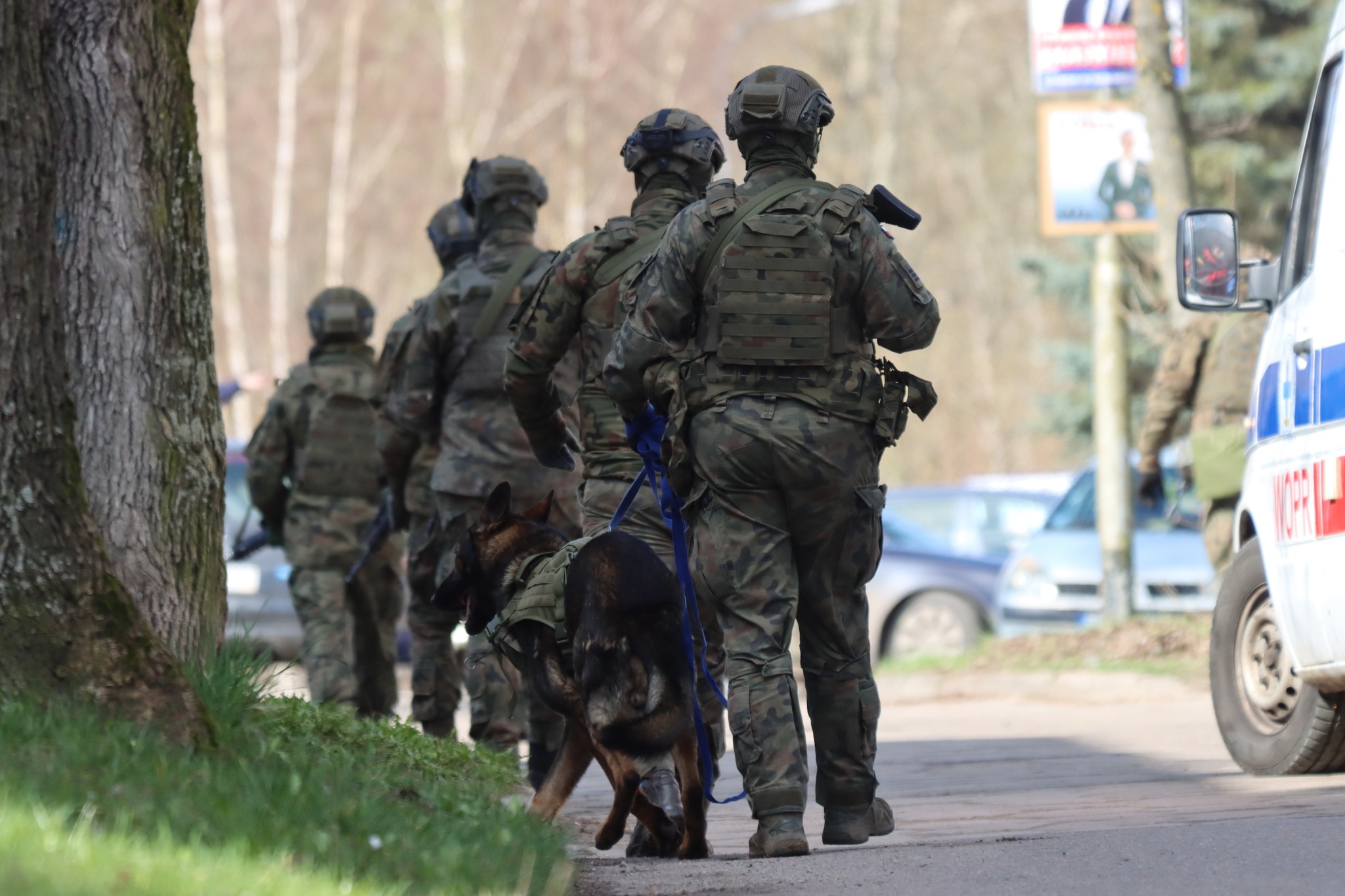 – WOT (Wojska Obrony Terytorialnej): 4 ciężarówki, 1 pojazd dowodzenia, 1 quad, 1 motocykl, 1 dron, 30 żołnierzy, 1 pies