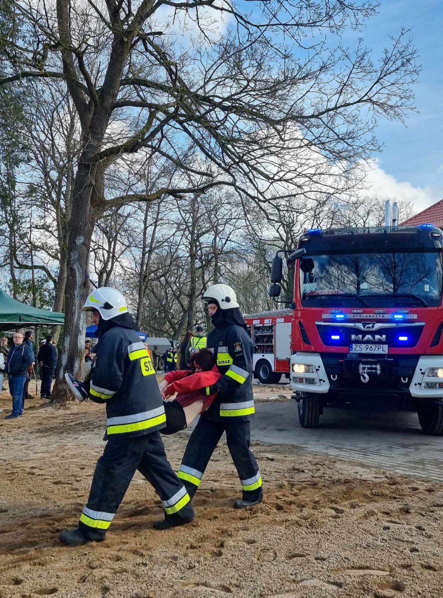 – Straż Pożarna: 10 pojazdów ratowniczo gaśniczych, 39 strażaków